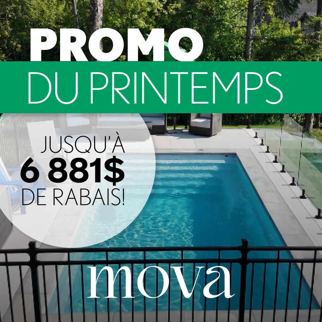 Faites vite, cette promotion est offerte pour un temps limité sur les projets de piscine clé-en-main seulement, sur modèles sélectionnés de piscines Mova.