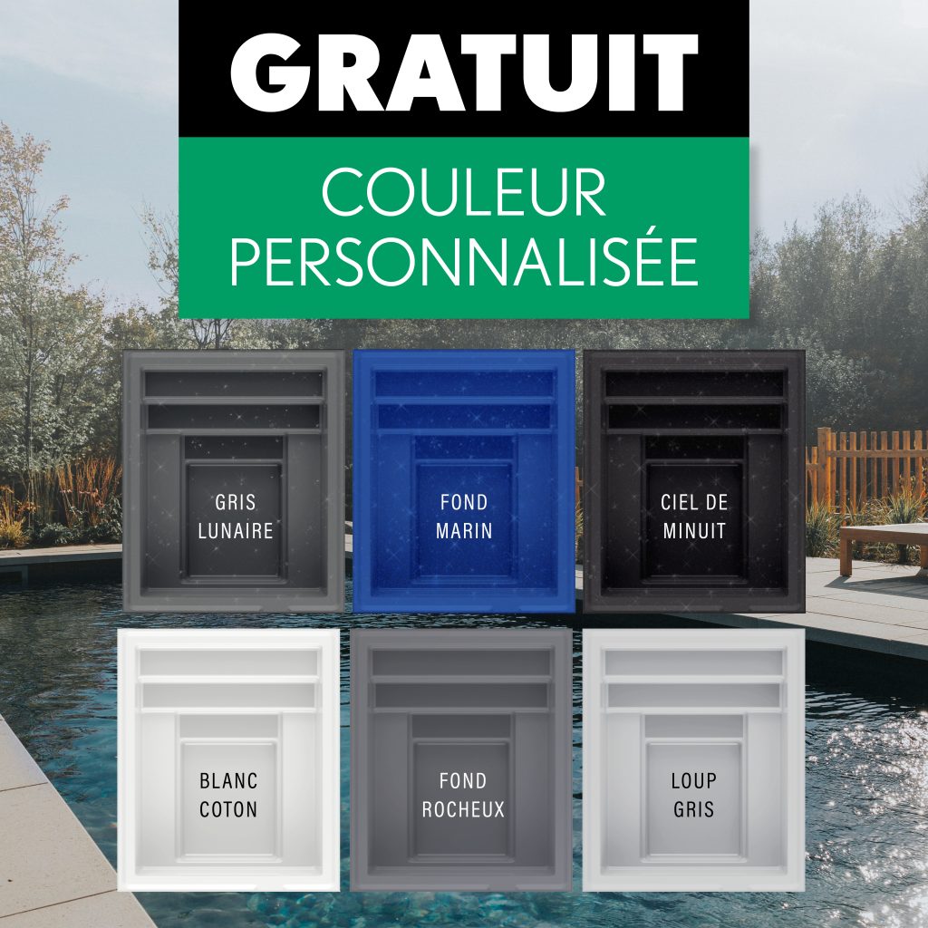 - L’option couleur de piscine personnalisée GRATUITEMENT!